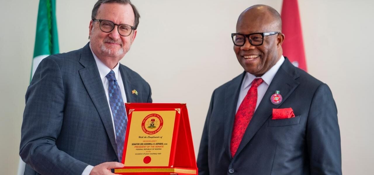 The President of the Senate, Senator Godswill Akpabio and the US Ambassador to Nigeria, Richard M. Mills Jnr held talks on Wednesday to strengthen the relations between the two countries.